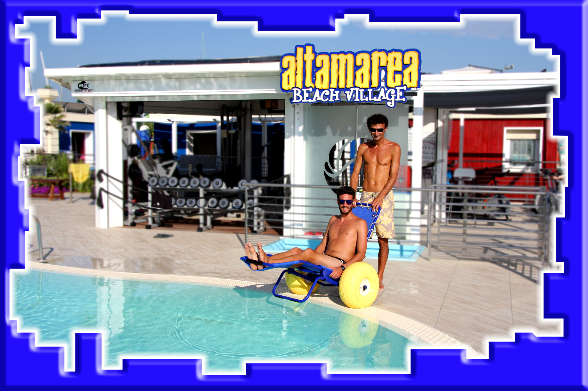 Ab heute ist Altamarea, wie schon immer sehr aufmerksam für alle Ansprüche seiner Gäste, mit dem Rollstuhl-Job ausgerüstet, der denjenigen die Möglichkeit gibt, mit Hilfe eines Assistenten im Pool oder im Meer zu schwimmen.