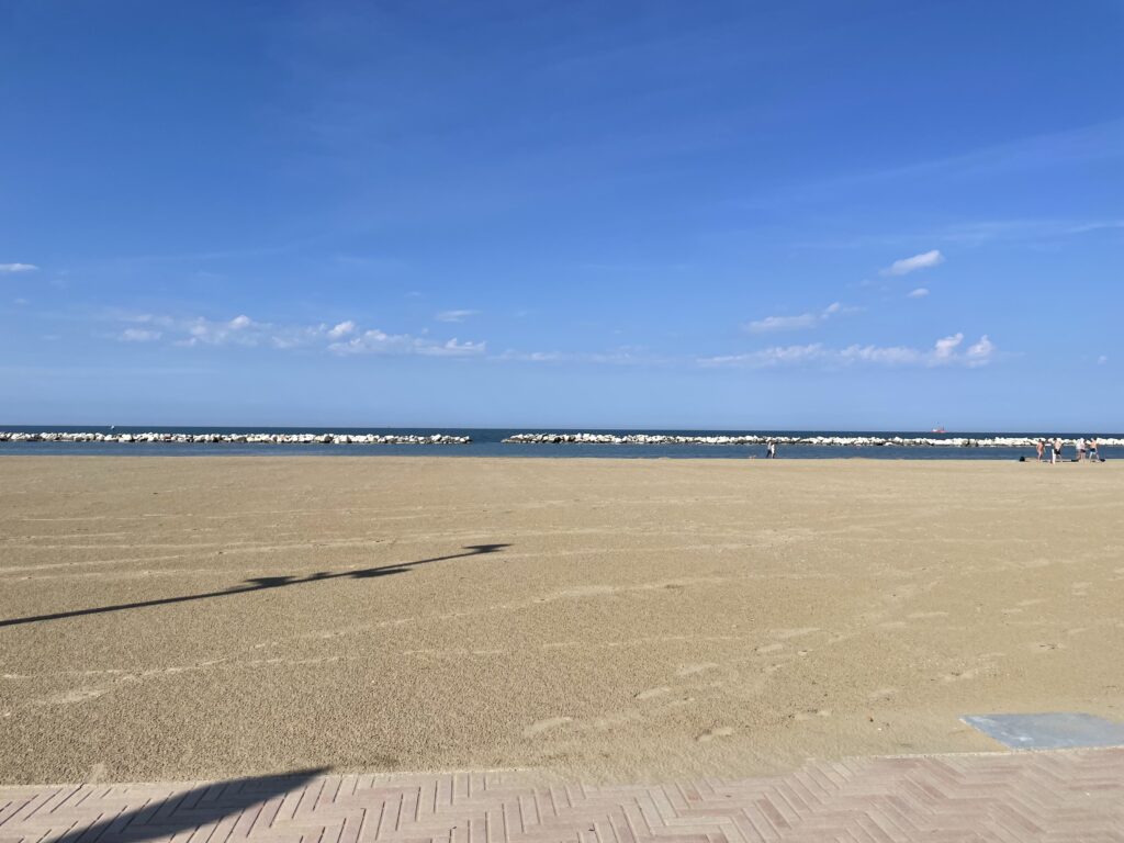 E quelle risate… risate spontanee e innocenti, risate di bambini e ragazzi che si ritrovano per giocare a pallone o semplicemente godersi un momento insieme. Si sentono dalla reception gialla alla reception rossa, una dolce musica che motiva i bagnini durante i loro piccoli lavori per preparare l’apertura della spiaggia.